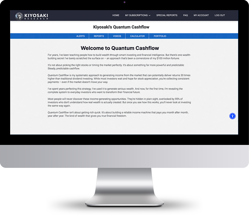 Once you’ve received your dedicated password to the secure, user-friendly Kiyosaki’s Quantum Cashflow Web site…